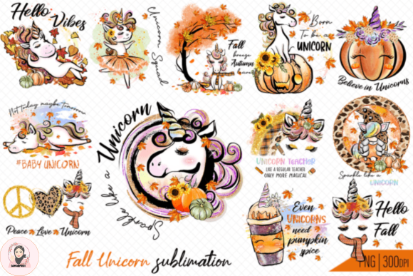 πŸ‚πŸ¦„ Fall Unicorn Sublimation Bundle | Autumn-Themed Digital Graphics