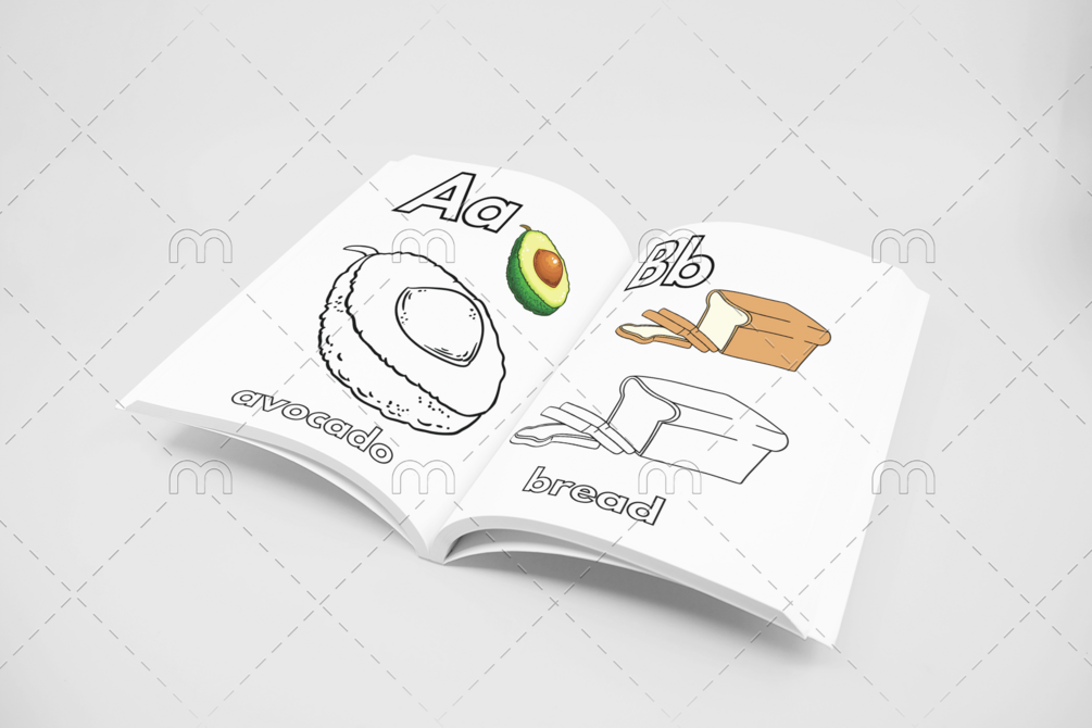 This A to Z Food Coloring Book is packed with adorable food illustrations from Avacado to Zucchini. Each page is designed to be fun, simple, and educational — perfect for toddlers, preschoolers, and young learners.