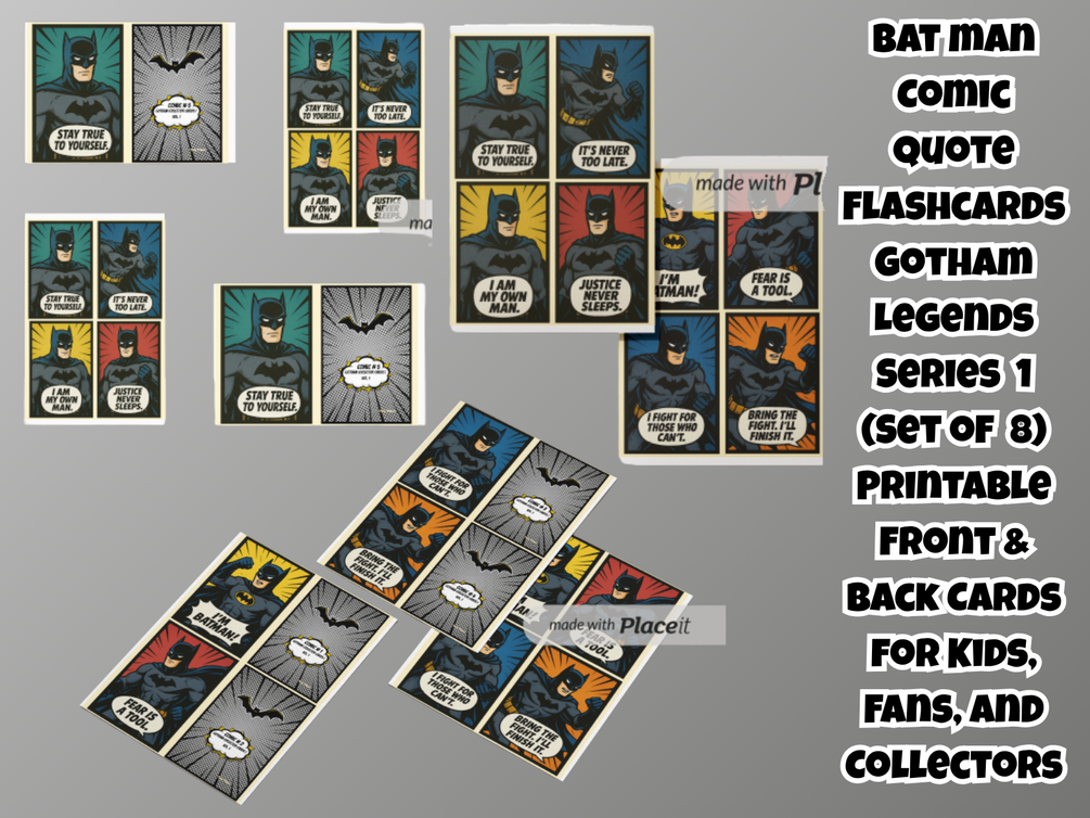 Batman Comic Quote Flashcards – Gotham Legends Series 1 (Set of 8) | Printable Front & Back Cards for Kids, Fans, and Collectors