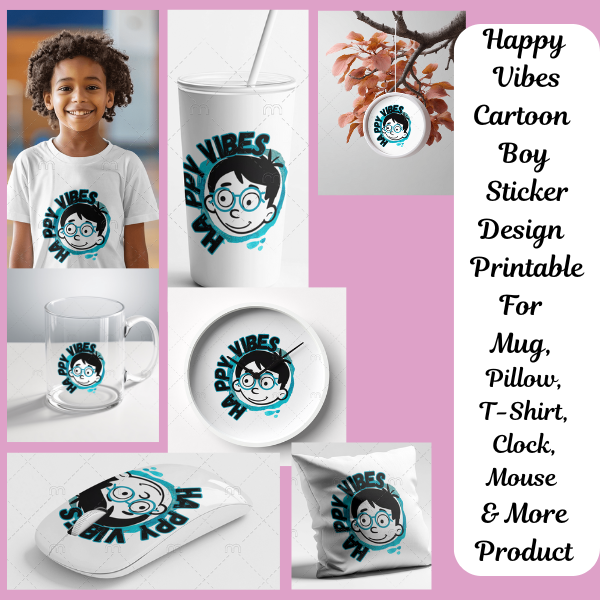 Bring positivity and personality to your day with this cheerful “Happy Vibes” cartoon sticker design! Featuring a playful black-and-white boy character with bright blue glasses and a splash of watercolor blue, this artwork is perfect for t-shirts, notebooks, water bottles, laptops, or any surface in need of a little joy. The bold typography and fun layout make it a great choice for sticker collectors and good vibes lovers. Ideal for digital or print use.
