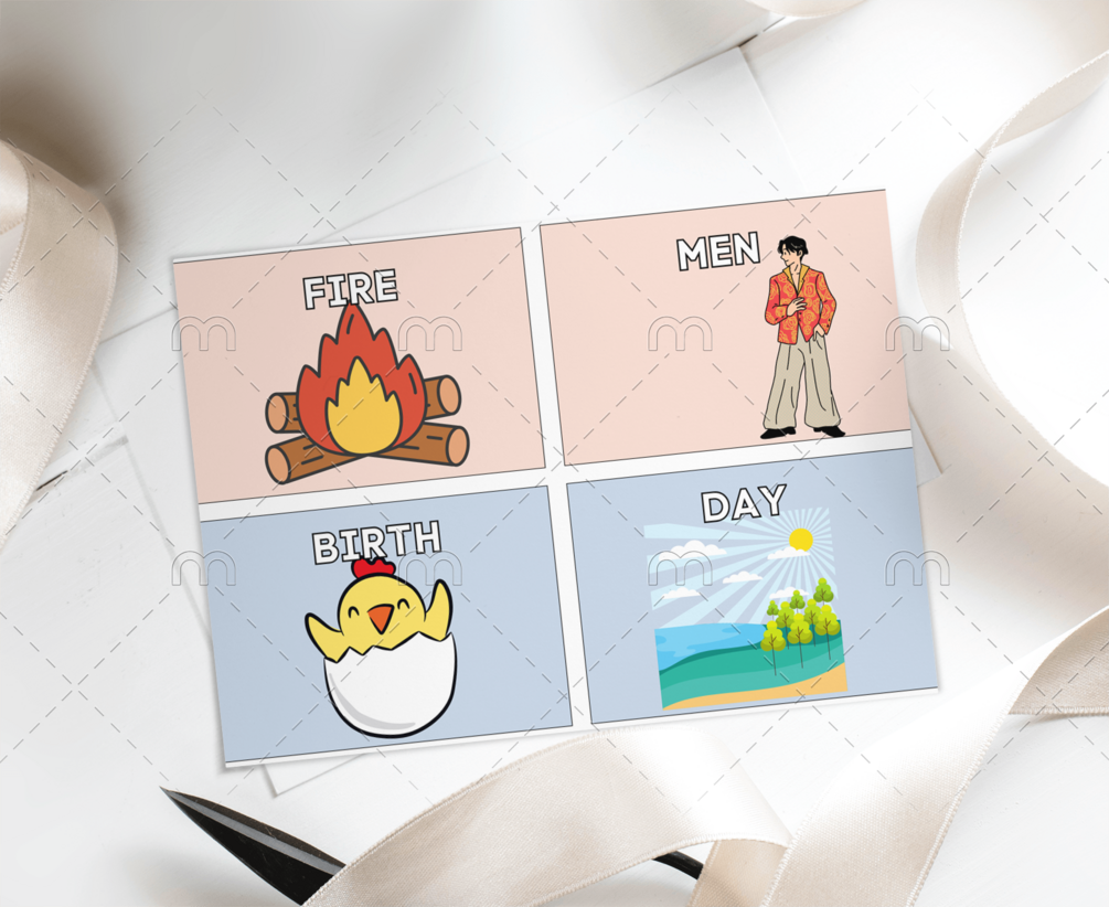 This set of 40 Compound Words Matching Flashcards is designed in a bright, colorful cartoon style that’s perfect for early learners. Each flashcard includes: