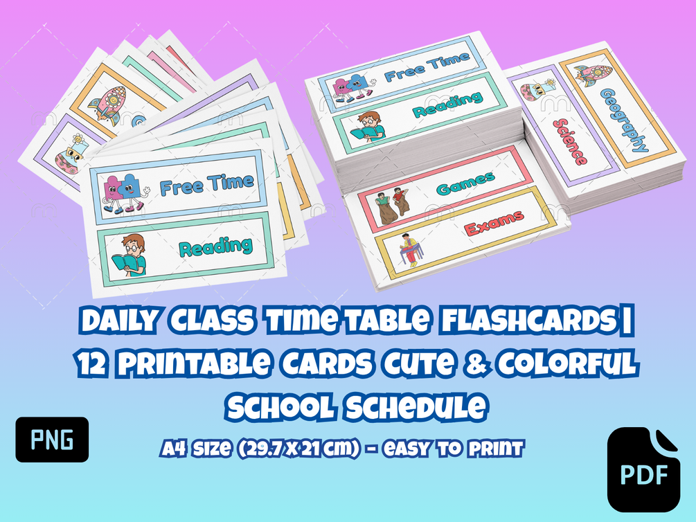 “Daily Class Timetable Flashcards | 12 Printable Cards | Cute & Colorful School Schedule”