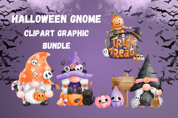 => Halloween Gnome Sublimation Clipart Bundle: 20 PNG