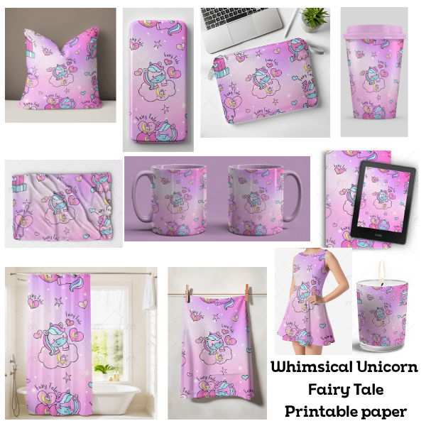 "Whimsical Unicorn Fairy Tale Printable Paper"
